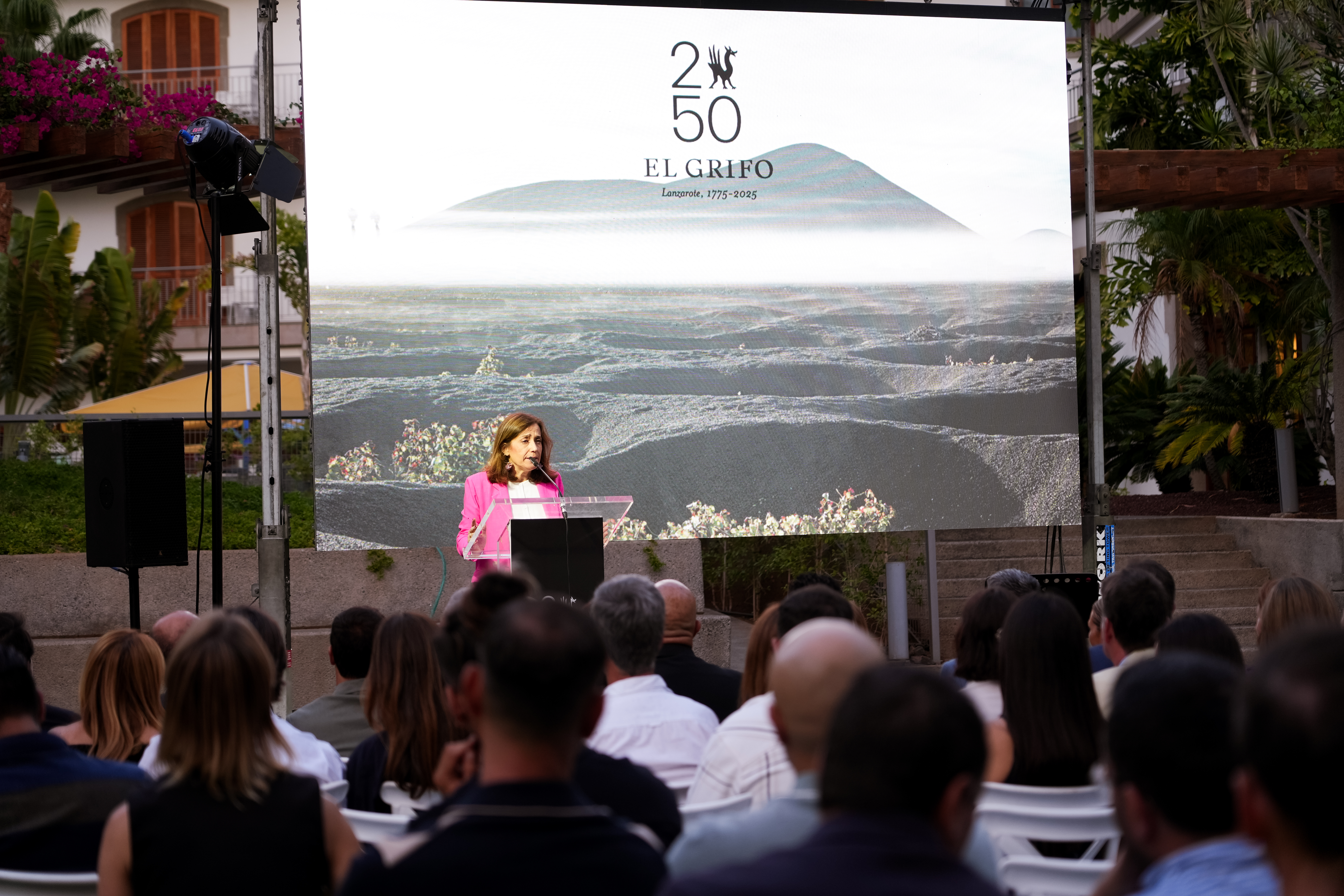 D. Fermín Otamendi, copropietario de El Grifo junto a su hermano D. Juan José Otamendi, tomó la palabra en nombre de la familia fundadora, destacando la importancia histórica de la bodega desde su creación en 1775 y su contribución pionera al desarrollo de la viticultura en Canarias. Posteriormente, se presentó un emotivo vídeo conmemorativo que recorrió los 250 años de trayectoria de la firma.